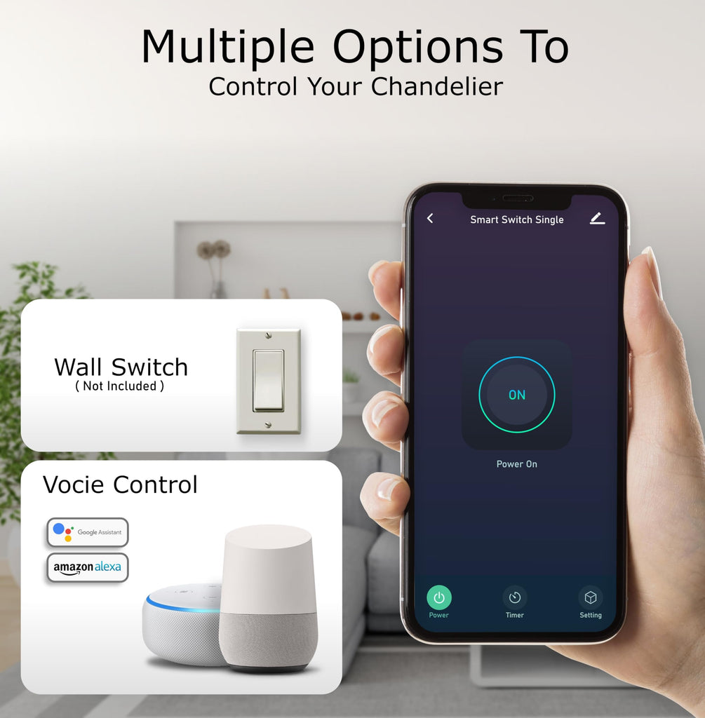 With our Modern Chandelier collection, you can effortlessly control your lighting experience using the power of your voice and you can also control the chandelier remotely through the dedicated app.