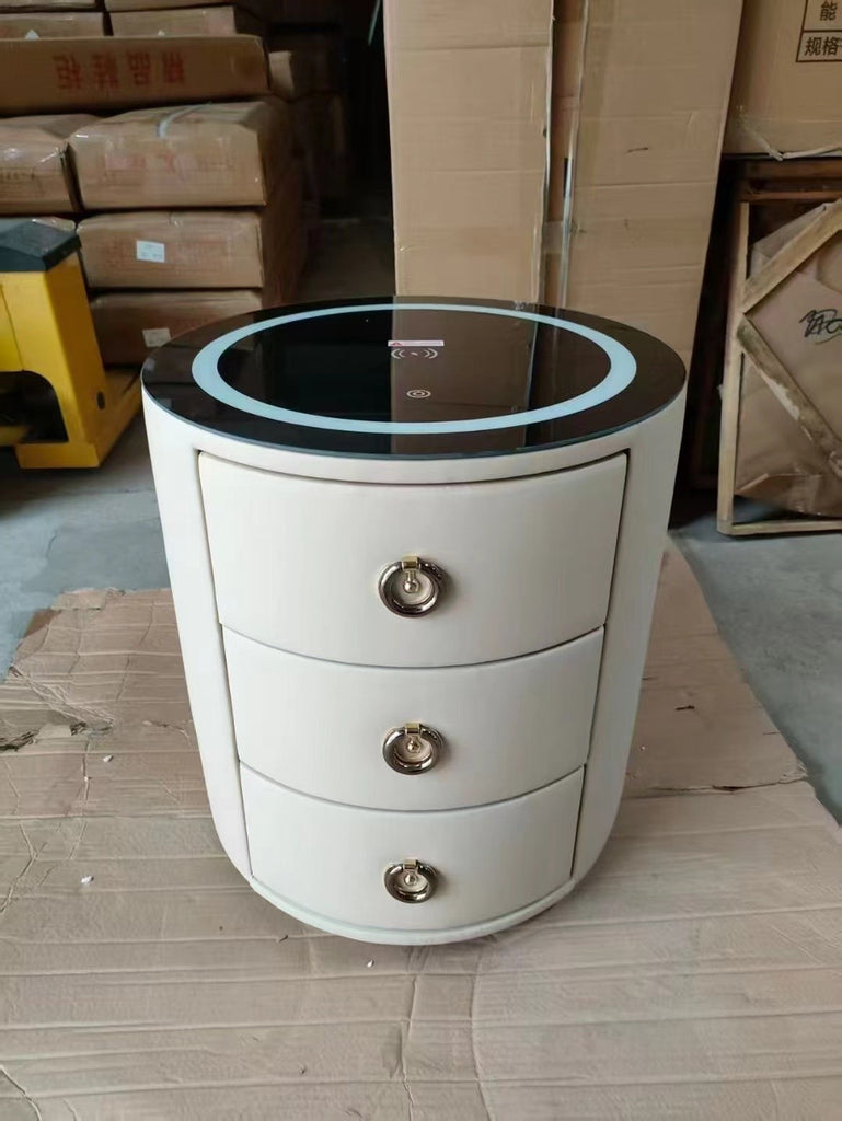 Modern floating bedside table with soft LED lighting, wireless charging, and a secure drawer. Designed to save space and keep essentials close, perfect for bedrooms, guest rooms, hotels, and compact living spaces. Premium finish, smart storage and a stylish contemporary look for any modern home.