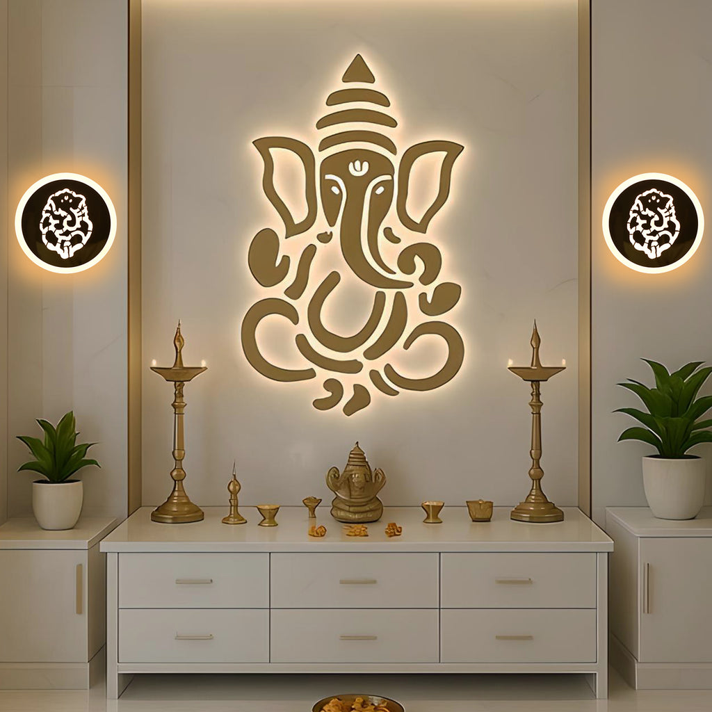 The Ganesha (Hindu Dharma) wall lamp is a graceful lighting fixture with an impeccable appearance.