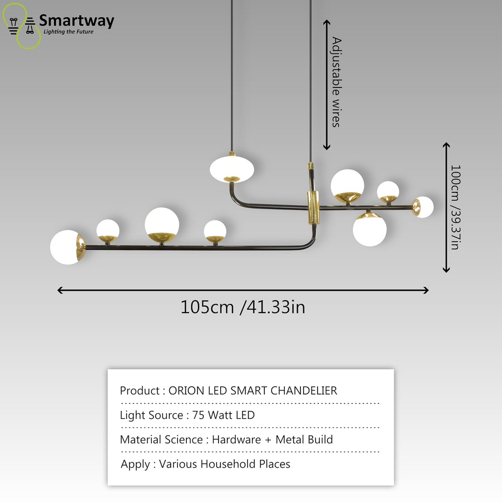 Orion Smart Chandelier, a radiant masterpiece that will illuminate your space with elegance and grace. This captivating hanging chandelier, with its golden color, is the perfect addition to elevate the ambiance of your living room, bedroom, restaurant, hotels, or dining room.