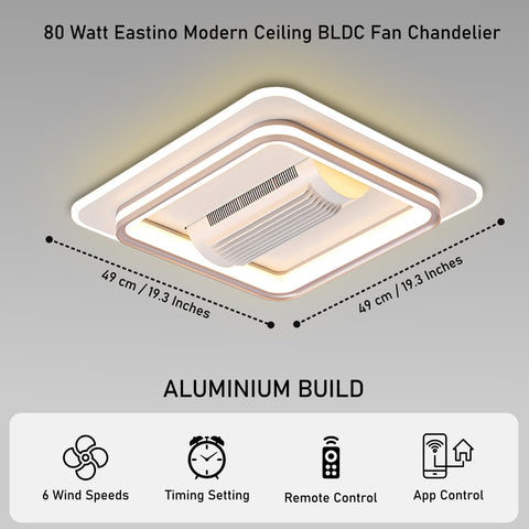 Graceful and splendid, Eastino Square Modern Ceiling Smart Voice Assist Fan Chandelier is an elegant lighting fixture with an impeccable appearance