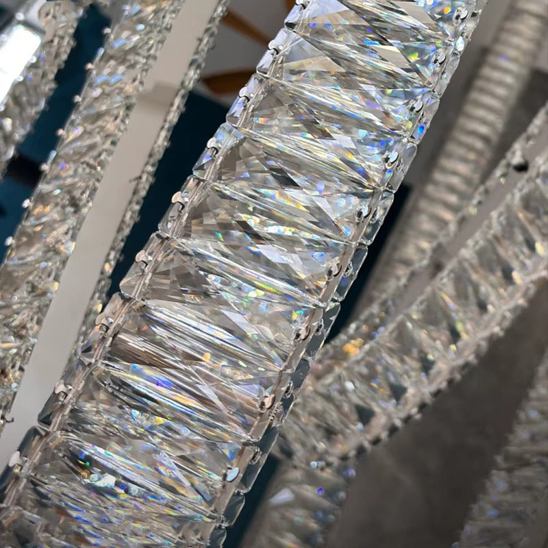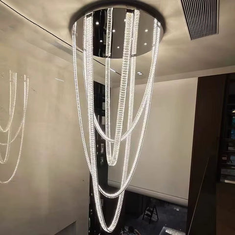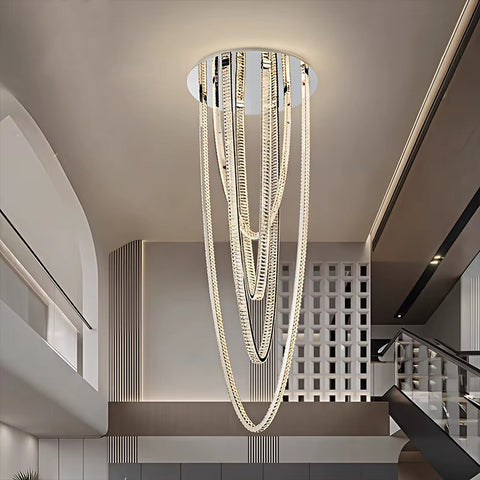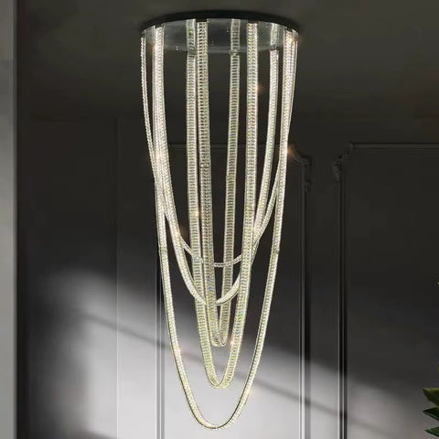 Graceful and splendid, Serena Double Height LED Smart Voice Assist K9 Crystal Chandelier is an elegant lighting fixture with an impeccable appearance