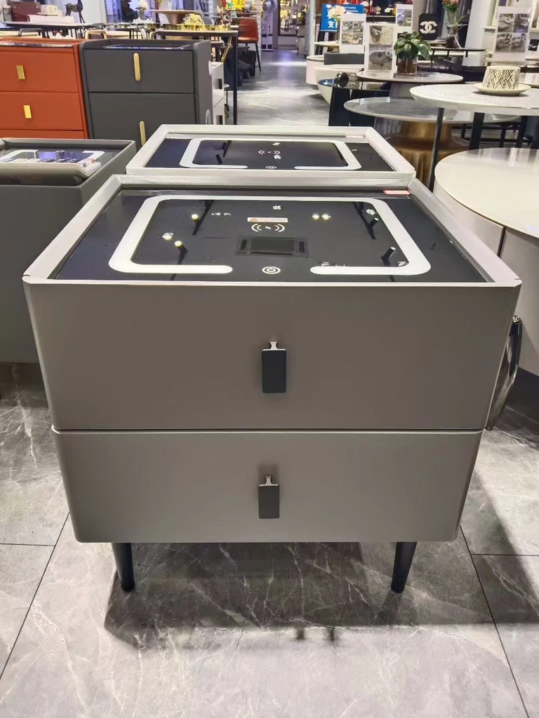 Modern floating bedside table with soft LED lighting, wireless charging, and a secure drawer. Designed to save space and keep essentials close, perfect for bedrooms, guest rooms, hotels, and compact living spaces. Premium finish, smart storage and a stylish contemporary look for any modern home.