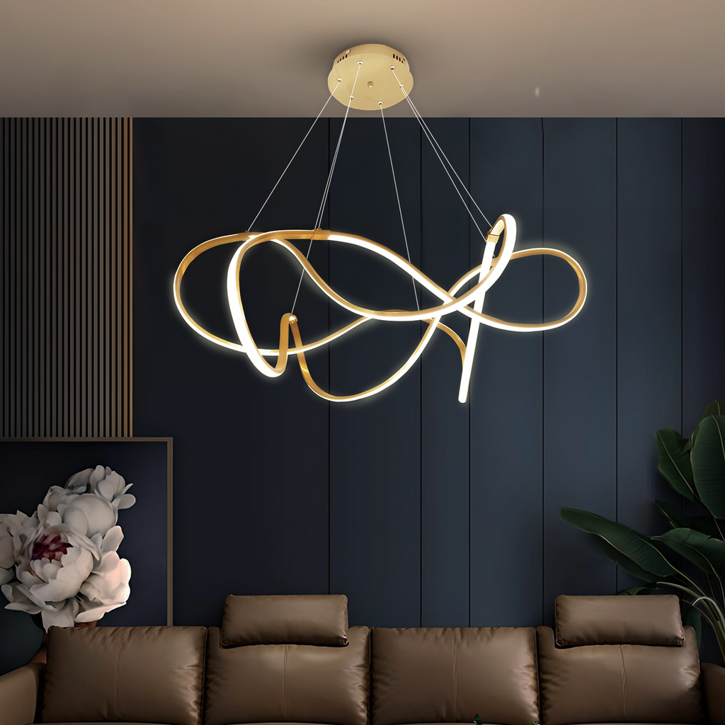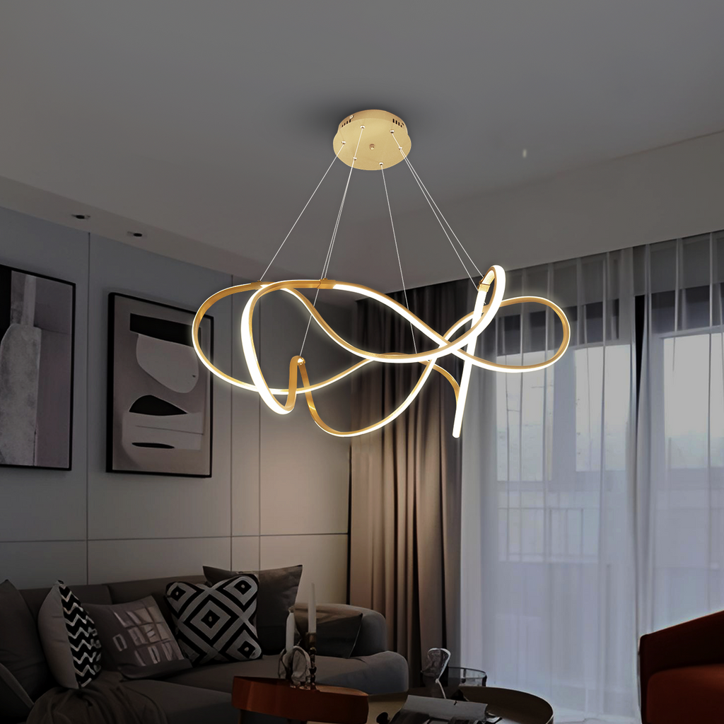 Graceful and splendid, Swirl Gold LED Smart Voice Assist Chandelier is an elegant lighting fixture with an impeccable appearance